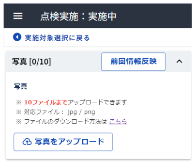 点検実施時の写真の投稿枚数の上限が10ファイルのところ、30ファイルと表示がされてしまう不具合を修正いたしました。正しい写真上限は10ファイルとなります。