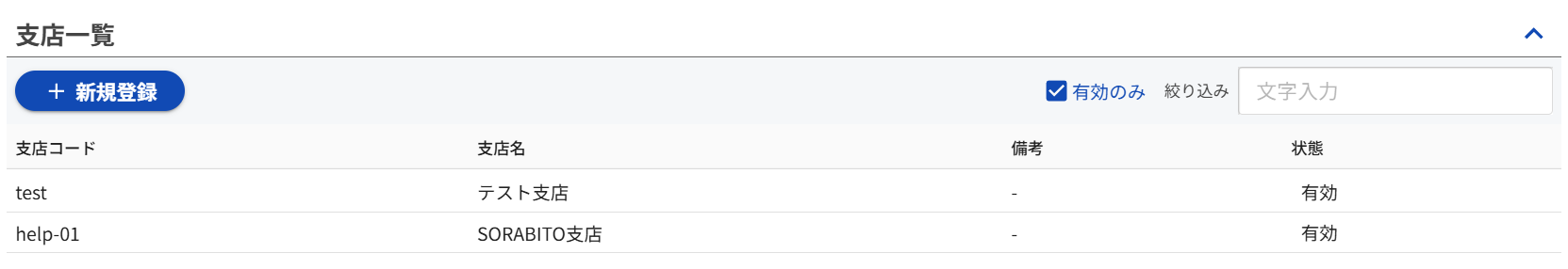 支店一覧は、システム管理者、支店管理者が編集可能です。