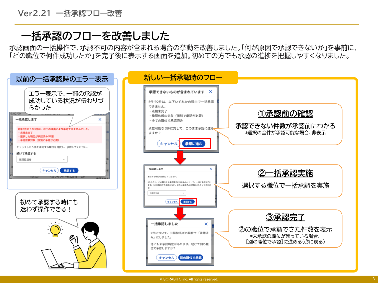 ①一括承認のフローを改善しました