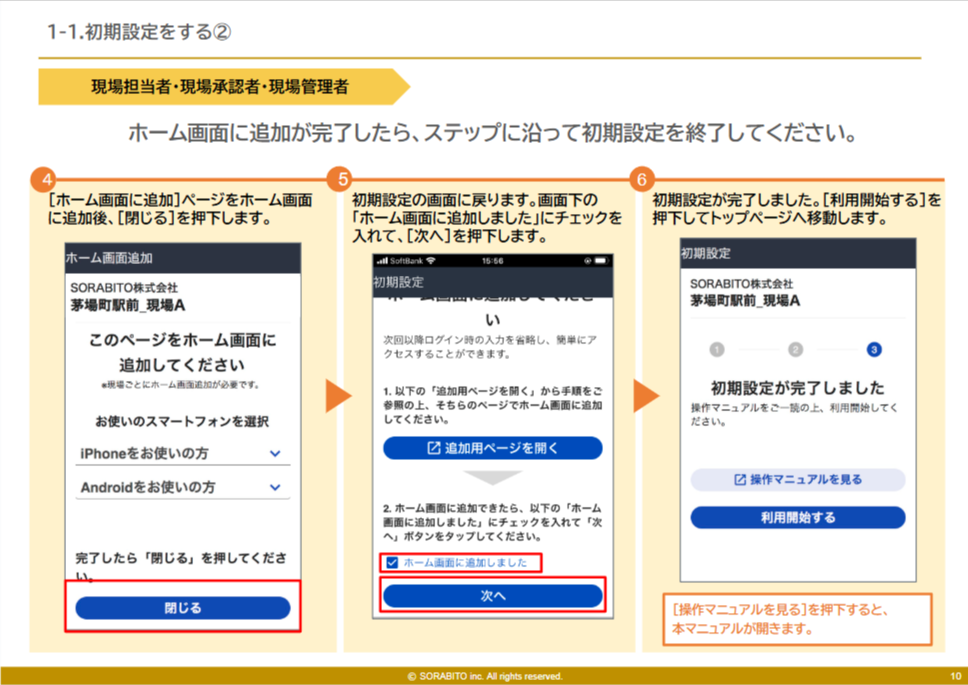 画面表示に従い、開いたページをスマートフォンのホーム画面に追加します。