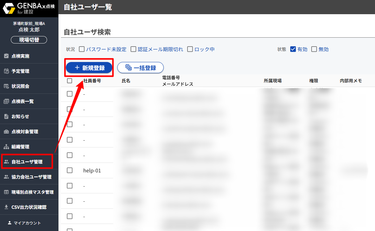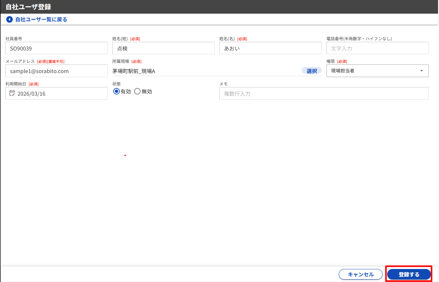 自社ユーザを個別に登録する(自社ユーザ登録)
