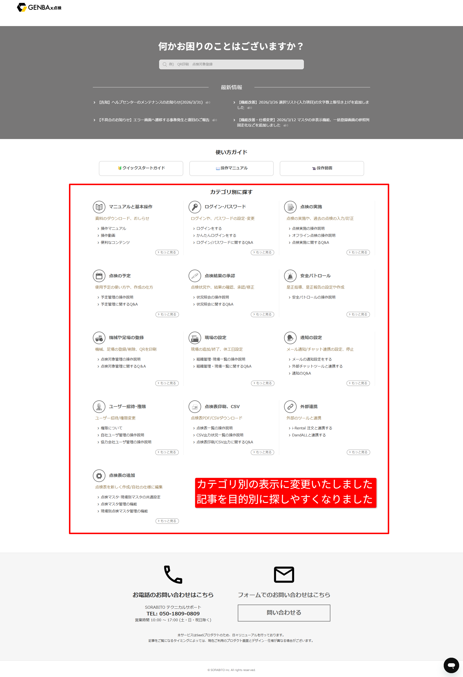カテゴリ別の表示に変更し、記事を目的別に探しやすくなりました