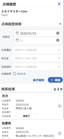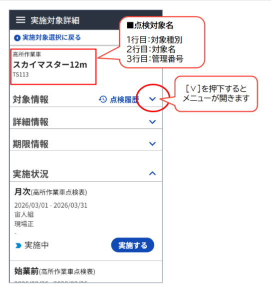 点検する対象の情報を確認する(実施対象詳細)