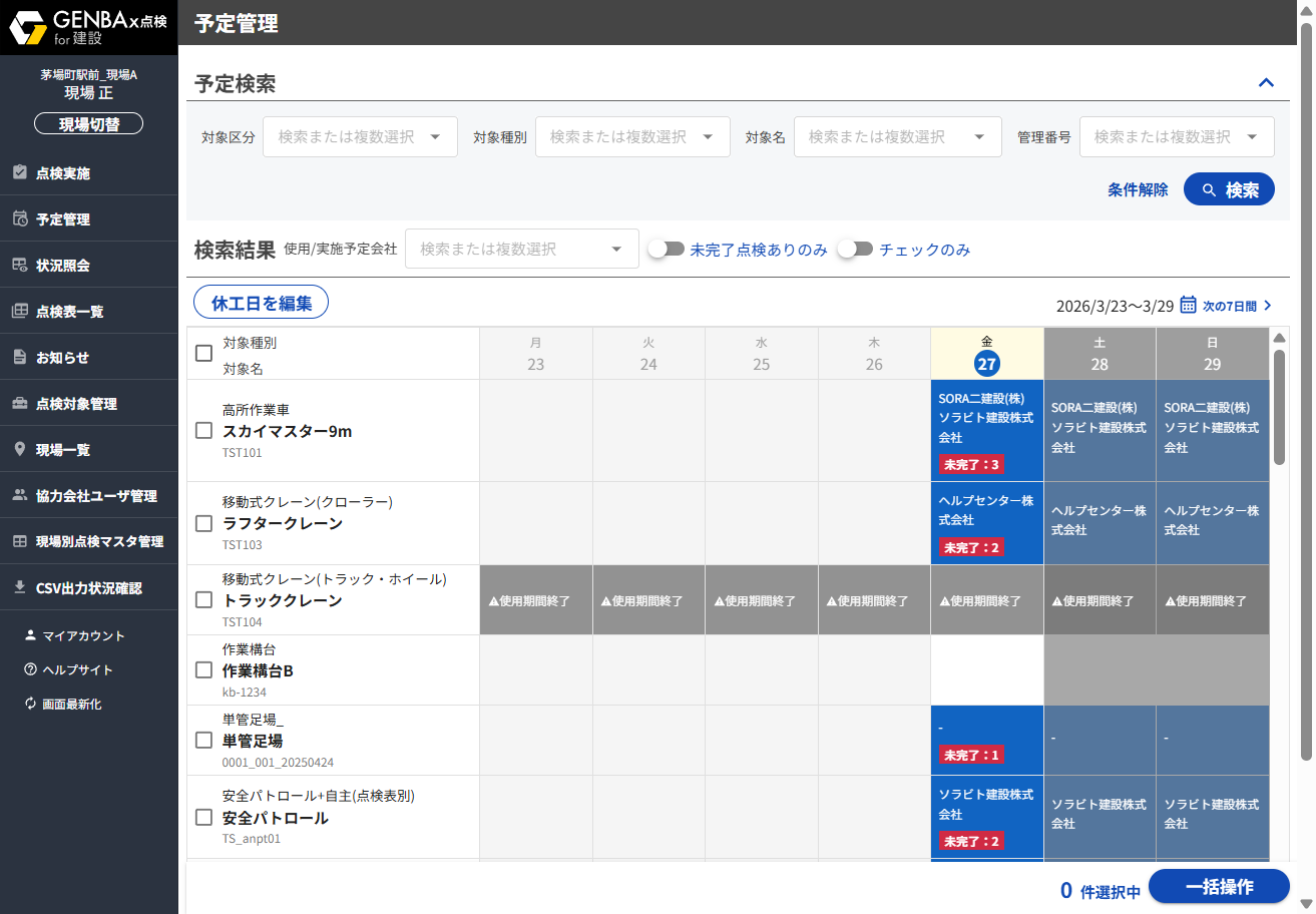 予定を立てておくことで、各社は「自分が今日やるべき点検」が整理された状態からスムーズに作業を開始できます。