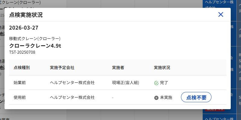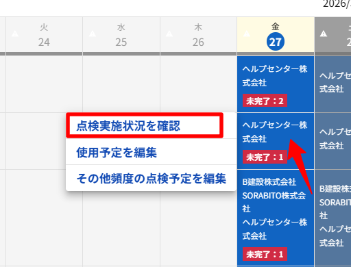 当日の予定をクリックして、[点検実施状況を確認]を開きます。